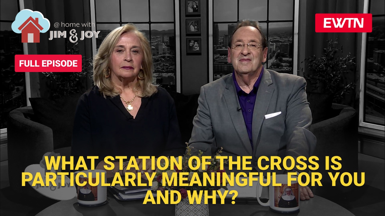 Jim and Joy read comments and take calls about the stations of the cross and the spiritual fruits associated with the devotion while discussing the meaning of particular stations.